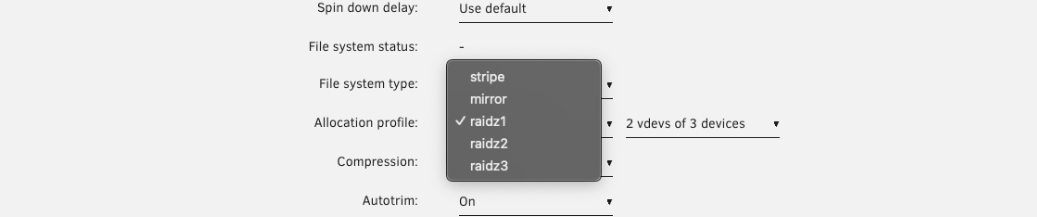 1. Choisissez votre profil d'allocation - cela détermine la redondance et les performances de votre pool.
